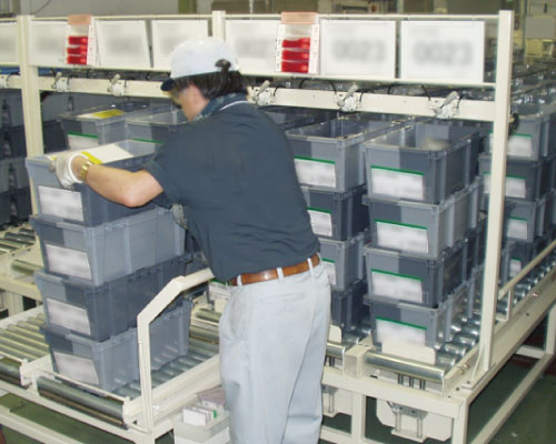 国内ラインから海外出荷まで一貫して流れる物流フローを構築する中で、環境対策の観点からワンウェイ段ボールの廃止が求められ、再利用可能で耐久性のある梱包資材への切り替えが課題となっていた。