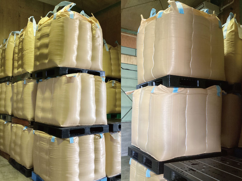 両面使用パレットで実現する、米フレコン保管の安定化